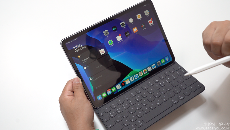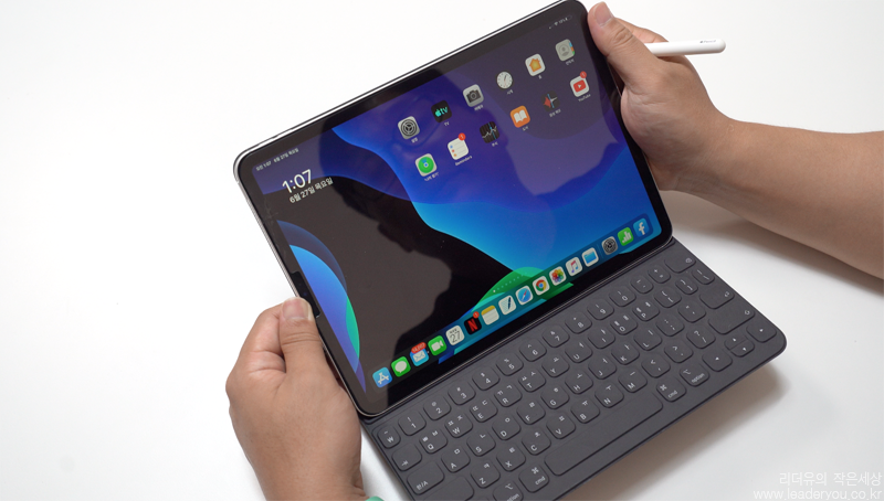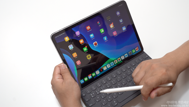 그리고 아이콘 사이즈가 작아졌습니다. 기존에는 아이콘 크기가 커서 앱 개수가 가로 5개 밖에 되지 않았는데요. 이번에 6개로 늘어났습니다. 조금 더 시원시원하게 아이패드를 사용할 수 있습니다.