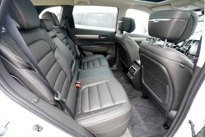 2019 르노삼성 QM6 뒷좌석 공간은 여유롭습니다. 거기다 페이스리프트를 통해 2열 리클라이닝을 추가 했습니다. 최대 32도까지 각도 조절이 가능해 장거리 여행시 더욱 편하게 타고 갈 수 있습니다.