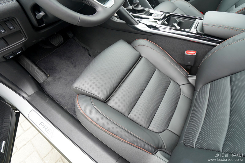 실내에는 프리미에르 전용 베르사유 그레인이 적용되어 있습니다. 골드빛이 살짝 도는 색상에 촘촘하게 도트 무늬가 들어가 세련된 디자인 포인트가 되고 있습니다.