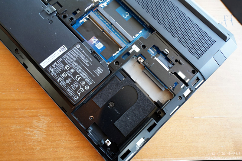 HP ZBook 15 G6 성능은 여기서 그치지 않습니다. 바닥면을 보면 하판을 쉽게 분리할 수 있게 스위치가 있습니다.