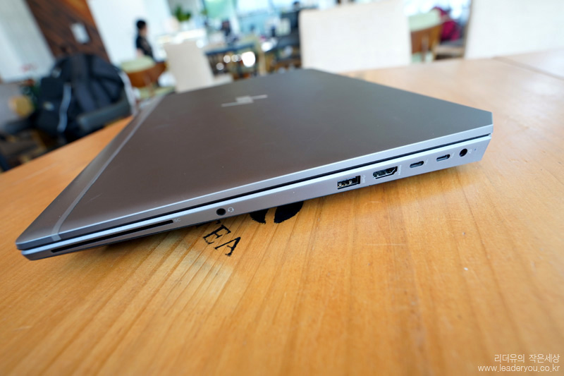 HP ZBook 15 G6 옆모습을 보면 이 노트북의 디자인 특징을 알 수 있습니다. 뒤쪽에서 아래로 내려갈수록 슬림한 디자인을 가지고 있습니다.