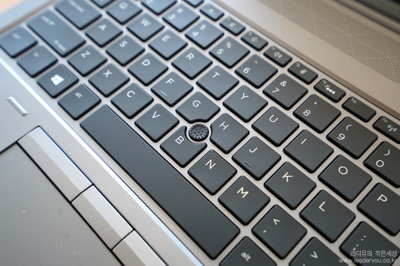 키보드 중간에는 마우스처럼 컨트롤이 가능한 스틱 버튼이 있고