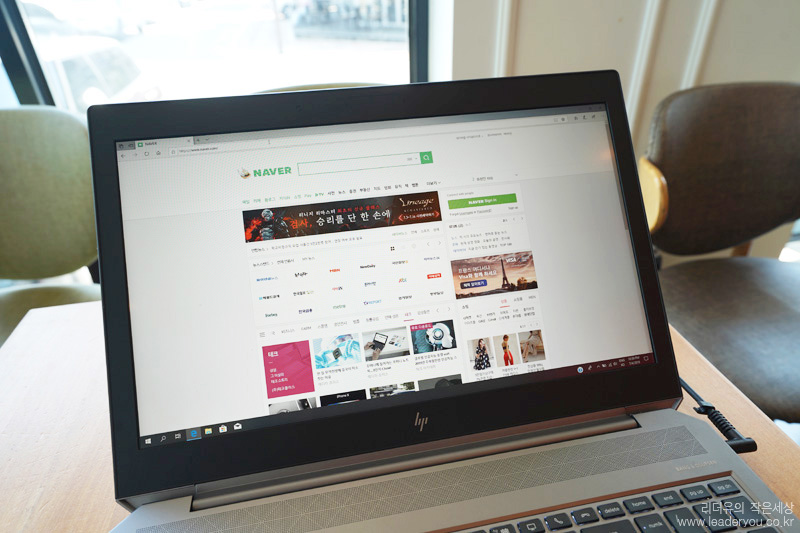 웹서핑시 화면입니다. 15.6인치 디스플레이라 여유로운 화면을 볼 수 있습니다.