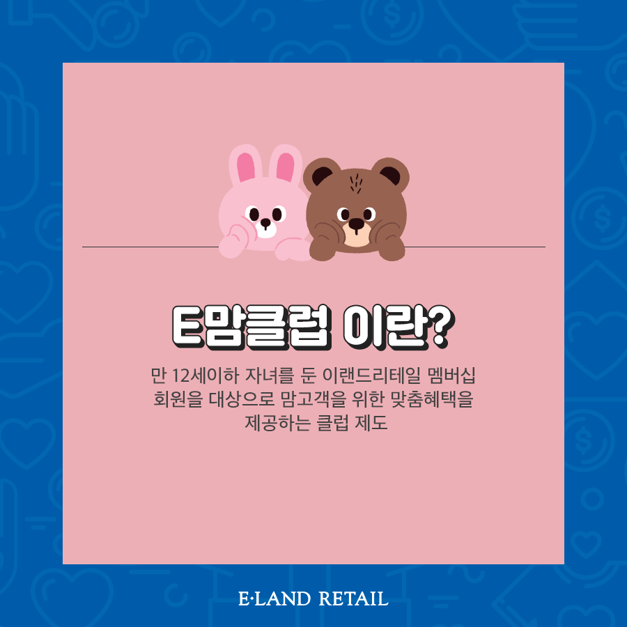 이랜드리테일 기부캠페인은 E맘클럽 회원이어야만 기부가 가능합니다. E맘클럽은 만 12세 이하 자녀를 둔 이랜드리테일 멤버십 입니다. 맘고객을 위한 맞춤혜택을 제공하는 클럽 제도이므로 가입해 두시면 좋습니다.