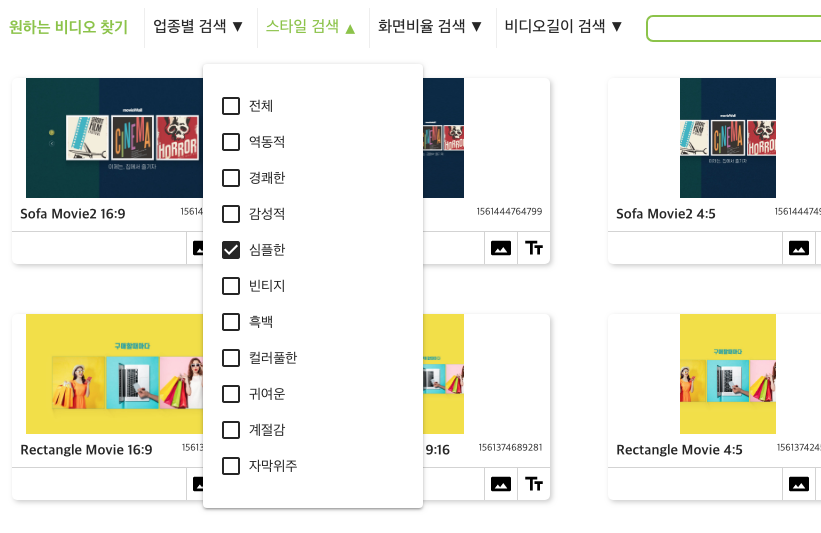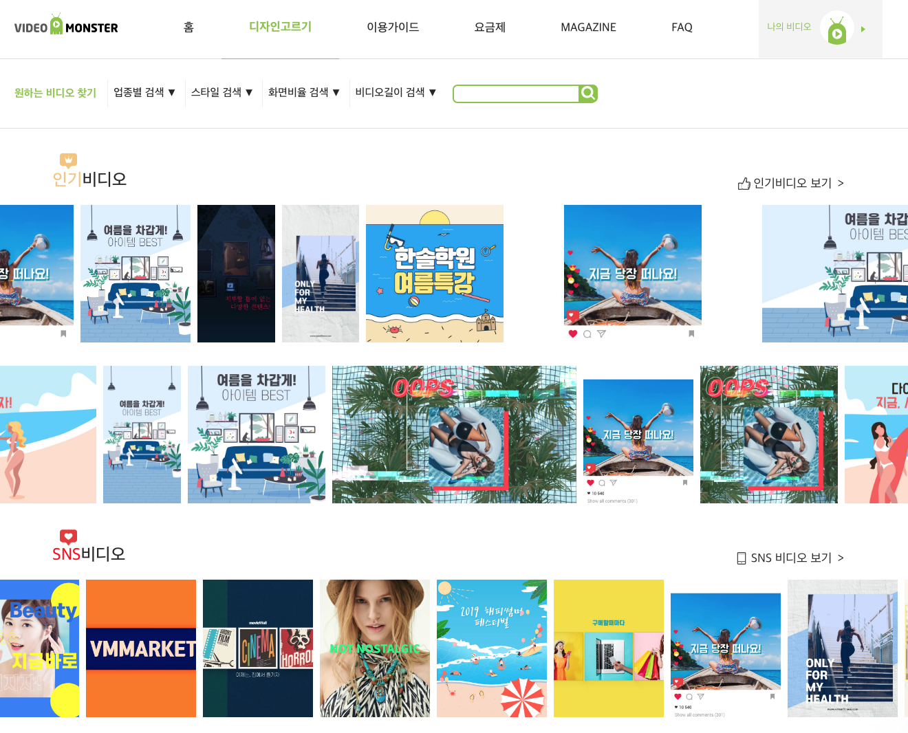 비디오몬스터는 먼저 디자인을 고르고 작업에 들어갑니다. 자신이 만들고자 하는 광고 홍보 영상제작 컨셉에 맞게 스타일을 하나 고릅니다. SNS 비디오, 일반 영상 등등 다양한 형태의 샘플이 있으니 다양한 느낌을 보면서 선택을 할 수 있습니다.