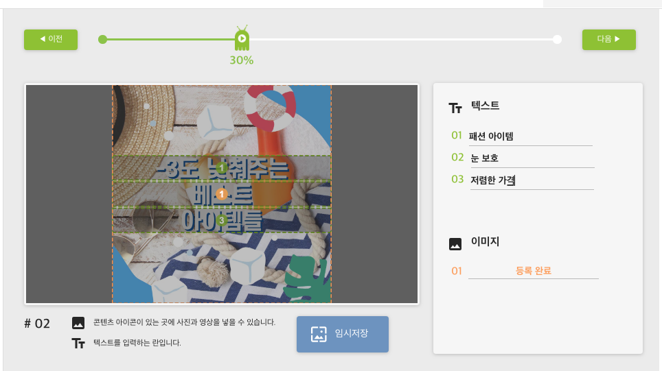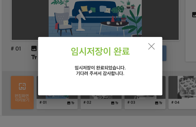 설정했다면 임시 저장으로 내용 저장도 가능합니다.