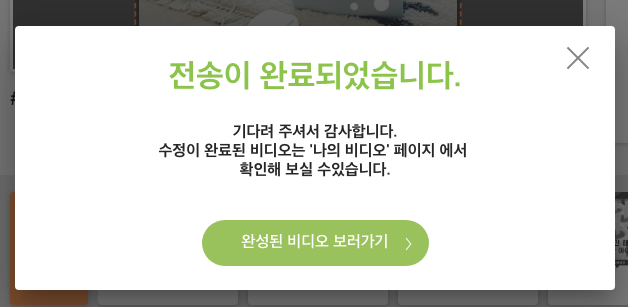 완료가 되면 전송을 해서 결과물을 볼 수 있습니다. 아주 간단하게 영상 편집을 할 수 있는 꿀 서비스입니다.