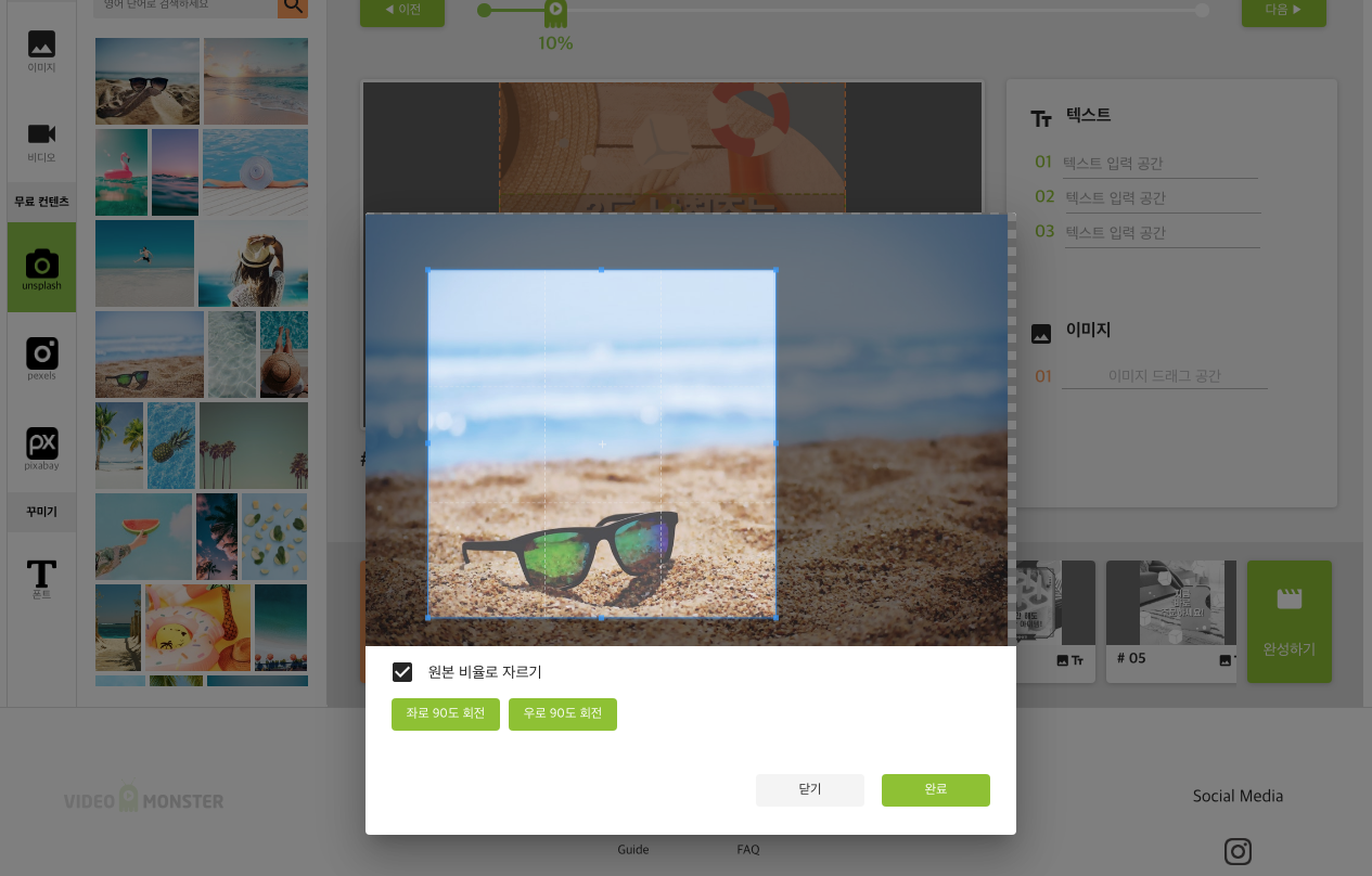 넣을 이미지를 선택하면 비디오몬스터 영상 편집 샘플에 맞게 사진을 조절해서 넣을 수 있습니다.