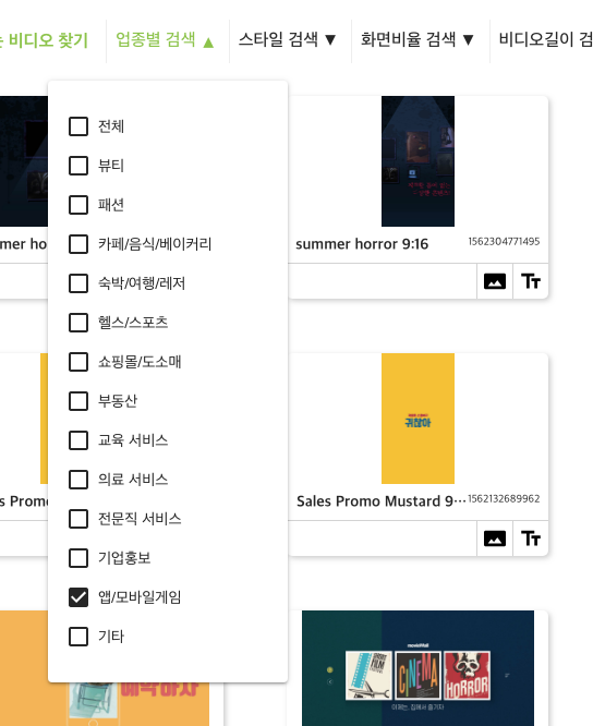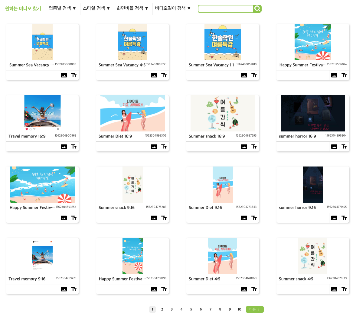 그리고 샘플 종류가 많으니까 업종별 검색도 지원하고