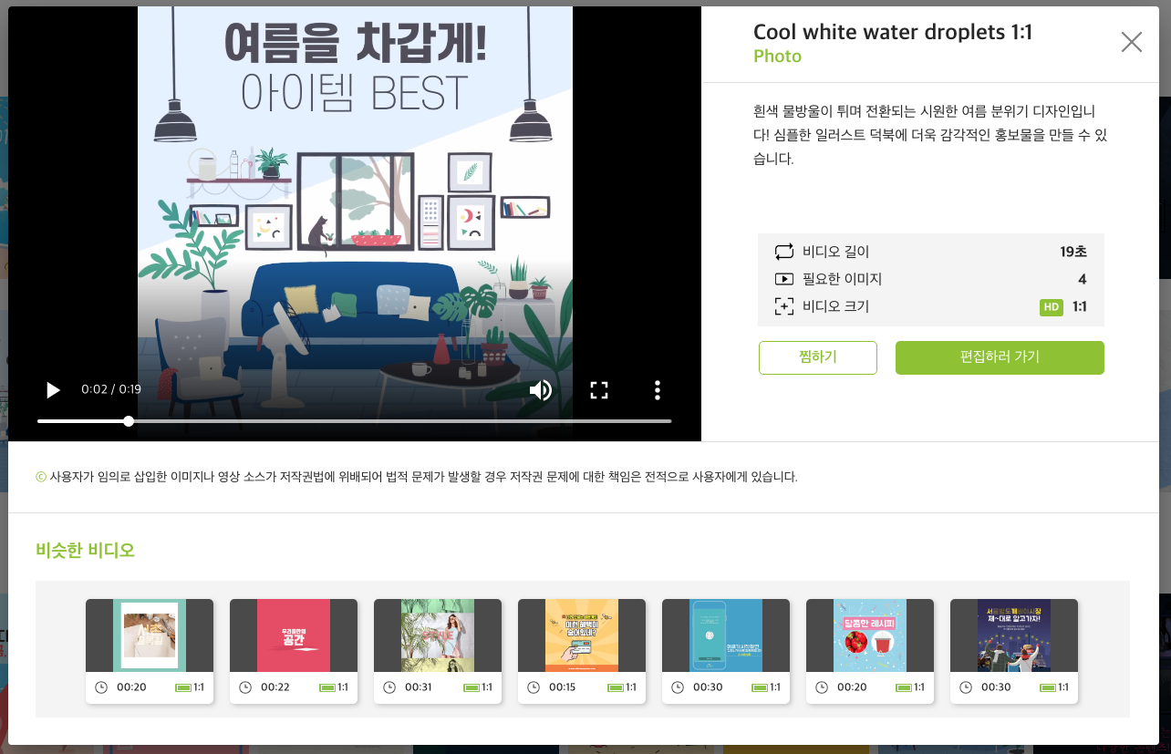 이제 하나의 샘플을 골랐다면 영상 편집에 들어갑니다. 아래 보면 비슷한 비디오가 나오니 비교해서 선택도 할 수 있습니다.