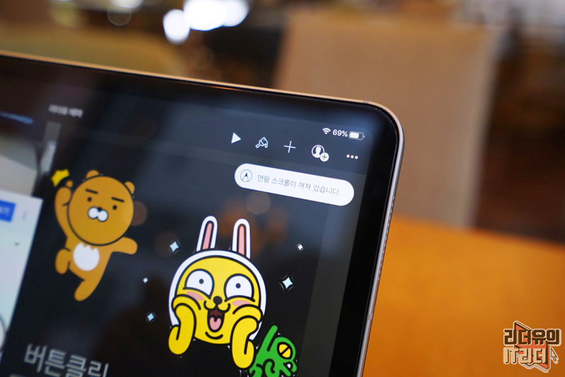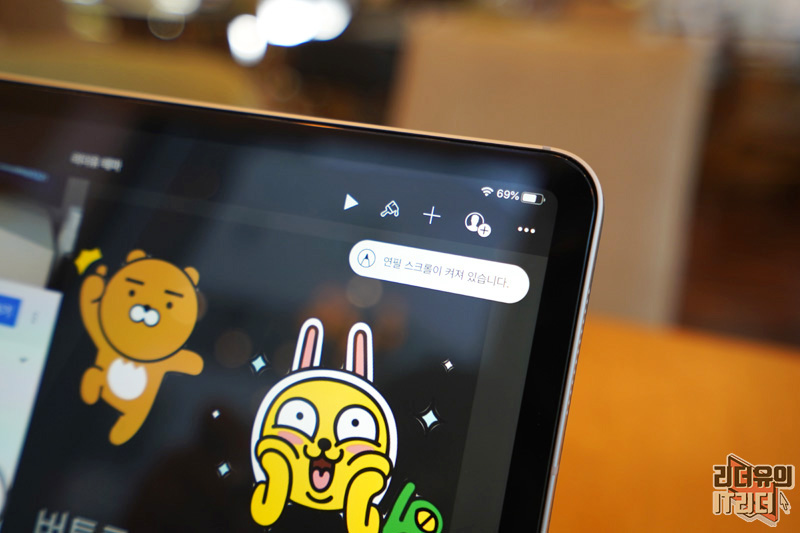 연필 스크롤을 켜고 끄고 할 수 있어 원하는 컨트롤을 쉽게 할 수 있습니다. 연필 스크롤을 켜면 손가락을 사용하듯 아이패드를 컨트롤 하는 것이고 연필 스크롤을 끄면 바로 그리기 모드로 들어가는 것입니다. 기존에는 손과 애플펜슬을 적절히 사용해야 했었는데 이제는 애플펜슬만으로도 작업이 가능합니다.