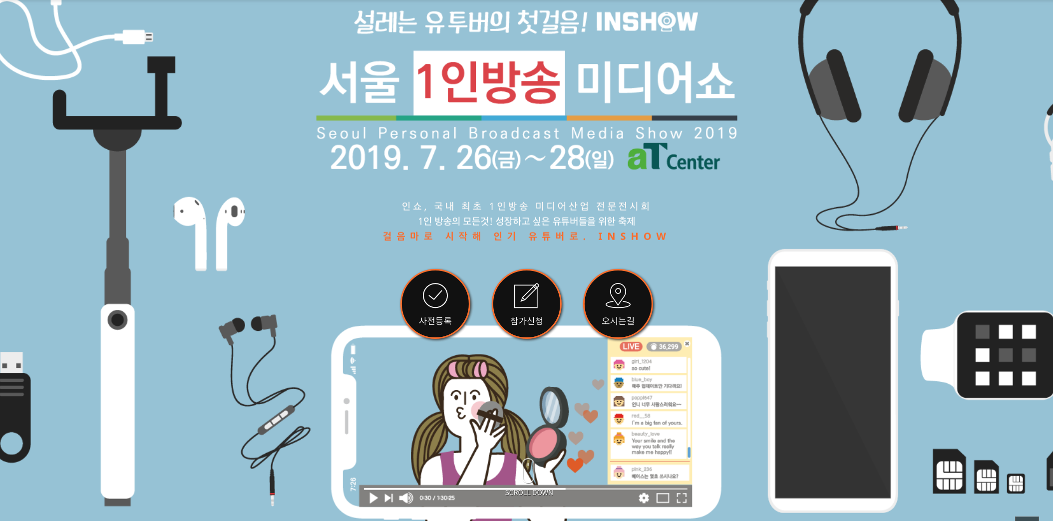 2019 인쇼 (서울 1인방송 미디어쇼)가 2019년 7월 26일~28일까지 서울 양재동 AT센터에서 열립니다. 1인미디어를 꿈꾸는 분들을 위한 스페셜한 행사인데요. 유튜버를 고민하는 분이라면 꼭 가봐야 할 행사이니 참고해 보시기 바랍니다.