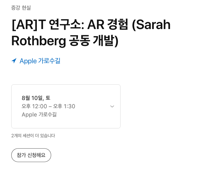 애플스토어에서 매일 진행되는 Today at Apple은 애플 제품을 제대로 활용할 수 있도록 양질의 무료 교육을 들을 수 있는 프로그램입니다. 포토, 동영상, 뮤직, 코딩 및 앱, 아트 및 디자인, 건강 및 피트니스, 제품 교육까지 알찬 프로그램이 준비되어 있으니 꼭 들어보시길 추천드립니다. 오늘 알려드린 [AR]T 세션은 8월 10일부터 진행하니 참고해 두시고요.