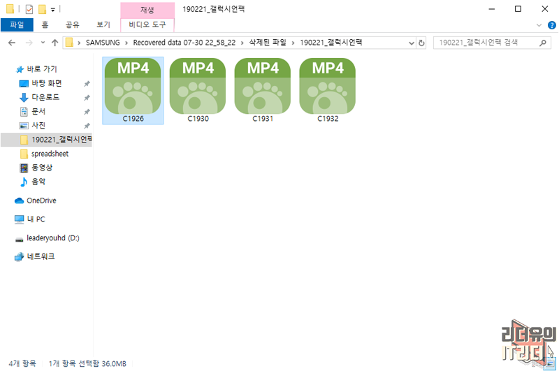 복구 된 파일을 보면 폴더까지 그대로 복구가 된 것을 알 수 있습니다. 안좋은 파일 복구 프로그램은 파일명이 새롭게 생기고 폴더가 깨지는 경우도 많은데 이지어스 데이터 복구 프로그램 ( EaseUS Data Recovery Wizard )은 파일 깨짐 없이 복구가 가능해서 어려움 없이 파일 확인이 가능합니다.