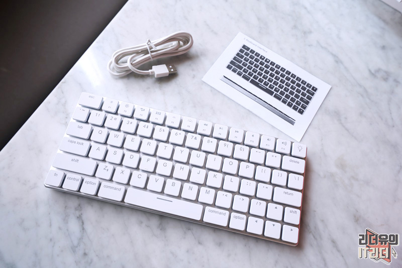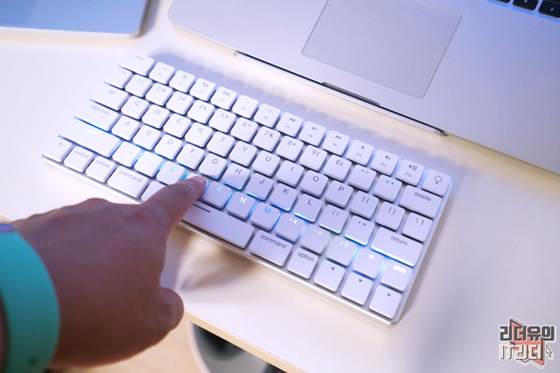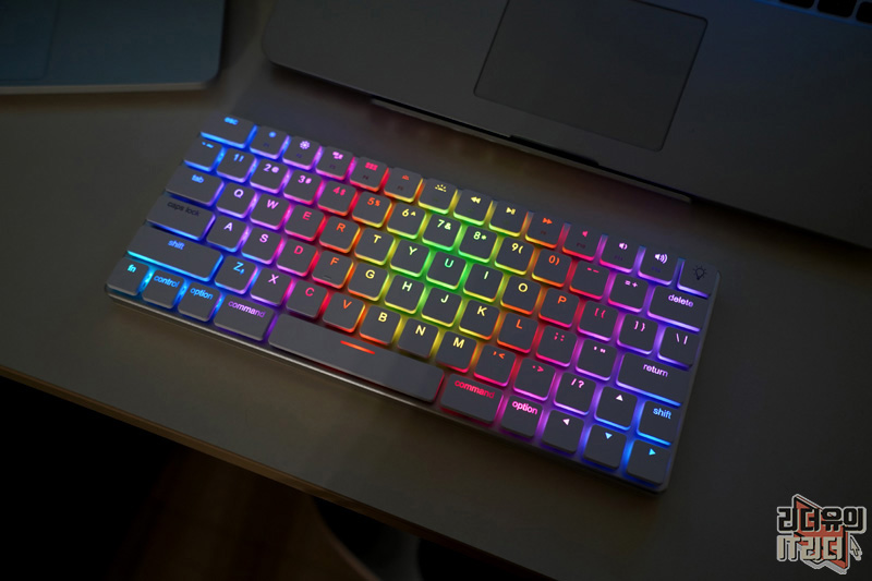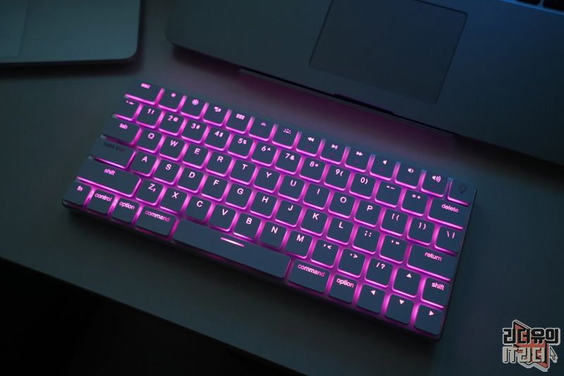 키보드 배열을 보면 맥에 사용하는 키보드라는 것을 알 수 있습니다. Command 키가 있어 맥북, 아이맥 등 다양한 맥 사용자들이 선택할 수 있는 기계식 키보드입니다. 물론 윈도우 사용자도 가능합니다.
