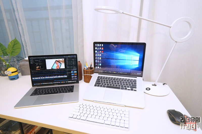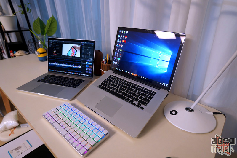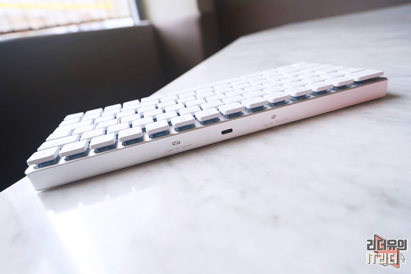 애플 매직키보드2와 비교한 모습입니다. 사이즈도 거의 비슷하고 키배열 구조도 같아서 맥 사용자들은 편하게 사용할 수 있습니다.