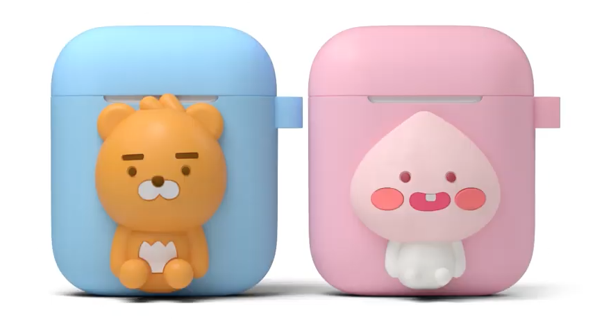 라인프렌즈와 경쟁하는 카카오프렌즈 에어팟 케이스도 귀여운 캐릭터와 파스텔톤의 색상으로 사랑스러운 에어팟을 보여주고 있습니다.