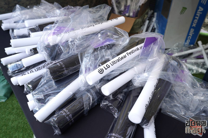 현장을 찾은 사람들을 위한 기념품도 준비되었습니다. LG 울트라기어 장패드, 형광막대를 제공해 응원도 하고 득템까지 하는 좋은 시간이 되었고