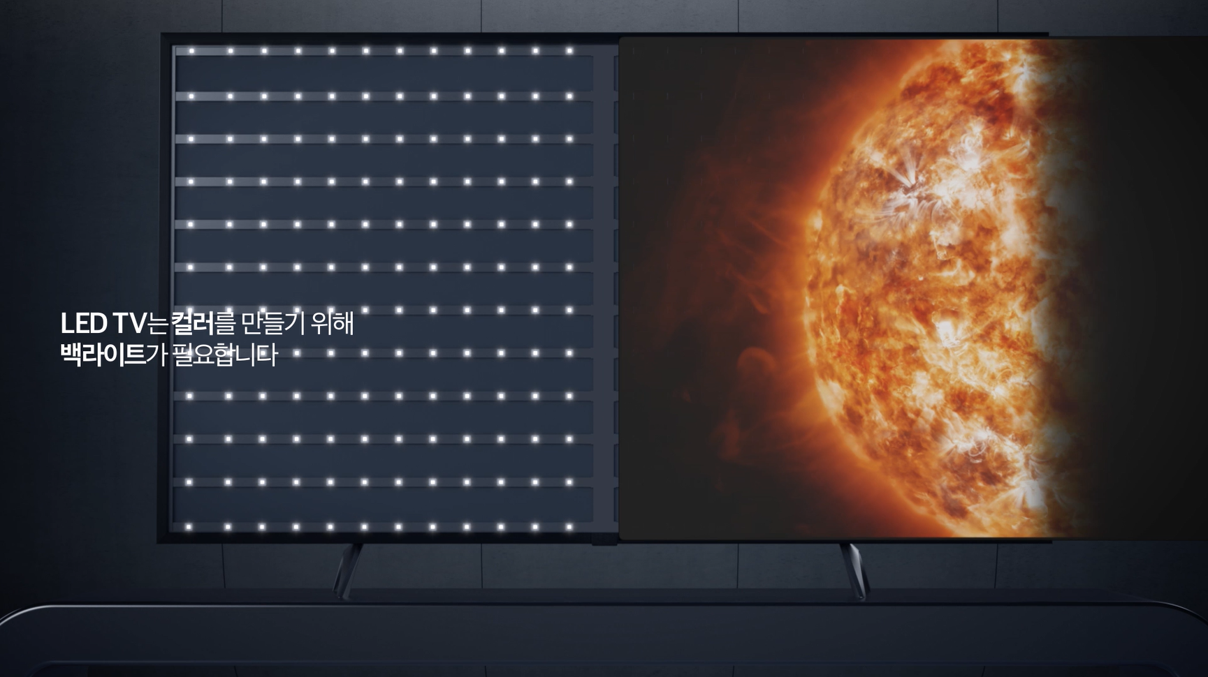 분명한 건 QLED TV와 올레드(OLED)TV는 완전히 다른 TV라는 것입니다. 이게 무슨 말이냐면, QLED TV는 "백라이트"를 가지고 있다는 겁니다. 반면 올레드(OLED)TV는 소자 하나하나가 스스로 빛을 내는 패널이기에 "백라이트"가 필요 없습니다.