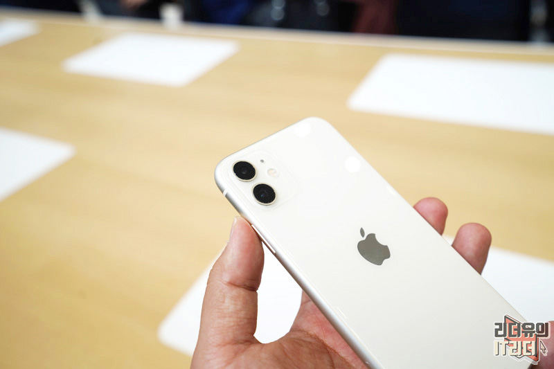 아이폰11 화이트 후면 모습입니다. 아이폰XR과 마찬가지로 깔끔한 매력을 느낄 수 있습니다.