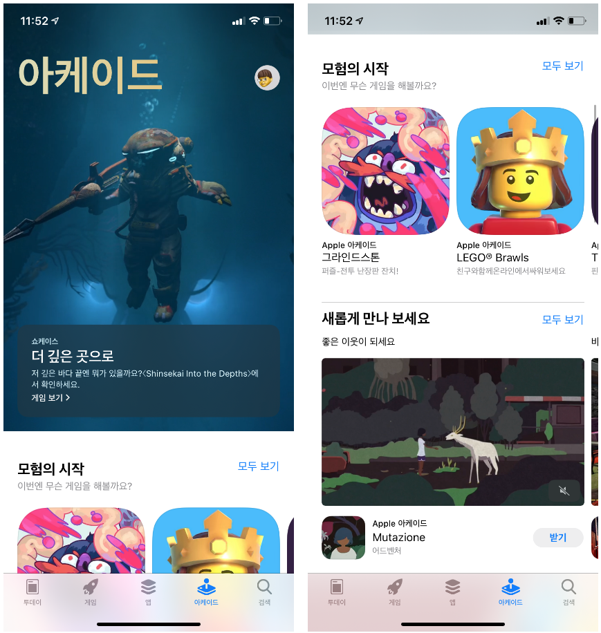 게임은 앱스토어에서 다운을 받듯 이용하면 됩니다. 채널만 애플 아케이드이지 이용 방법은 앱스토어와 똑같습니다.