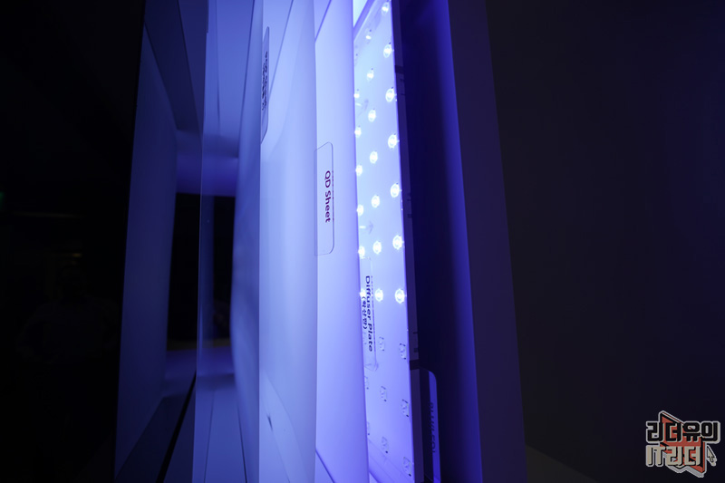 그리고 시야각의 차이도 확인했는데 QLED TV는 측면에서 보면 색이 날아가는걸 확인해 볼 수 있었습니다. 물론 LED TV 제품군도 요즘은 시야각이 많이 개선되긴 했지만, 옆에 있는 올레드(OLED) TV와 비교해 보면 그 차이가 큼을 알 수 있습니다. LG 올레드(OLED) TV는 시야각에 따른 색 왜곡이 적기 때문에, 어느 각도에서 보더라도 우수한 색감을 볼 수 있는게 큰 장점입니다.
