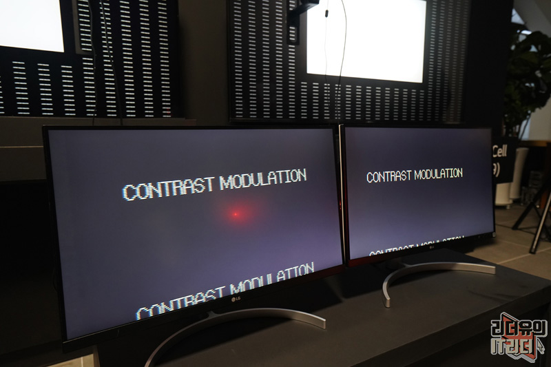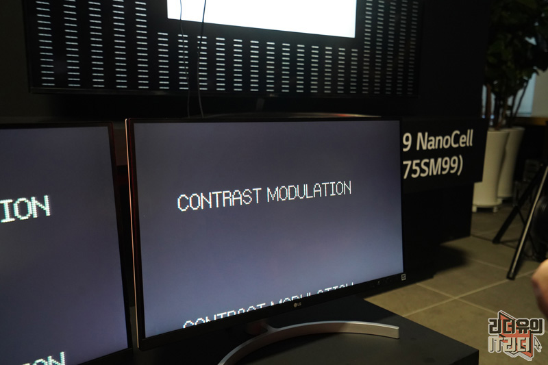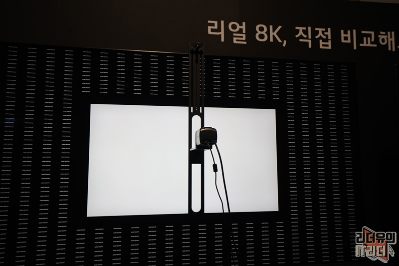 반면 오른쪽의 8K LG 나노셀 TV는 선명한 글씨를 보여주고 있습니다.