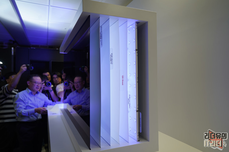 QLED TV는 LCD(LED) TV의 한 종류로 디스플레이와 백라이트 유닛 사이에 퀀텀닷 필름 (QD Sheet)를 추가해 색재현율을 높인 제품입니다. QLED TV를 구성하는 다양한 시트들을 볼 수 있습니다.