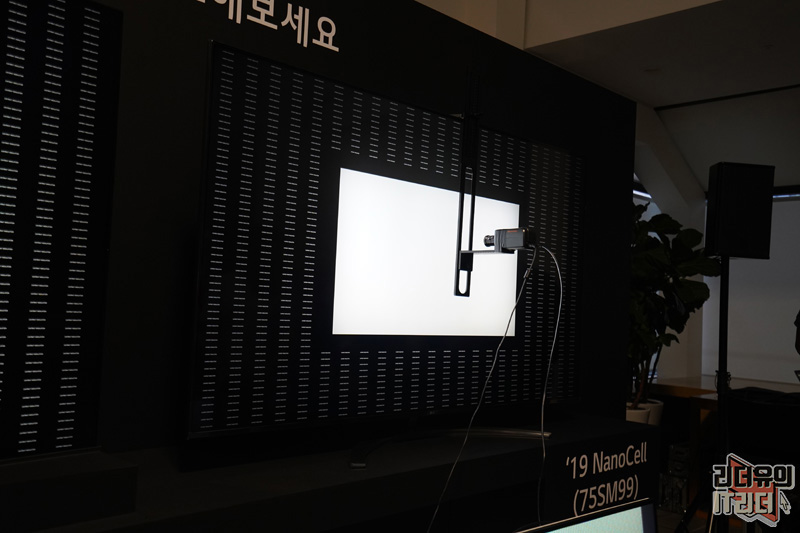 정말 해상도 차이가 크게 나는지 전문 장비를 통해서 확인해 봤습니다. 먼저 카메라 측정 결과가 실시간이라는 것을 보여주기 위해 8K 똑같다는 것을 보여주기 위해 나노셀 TV에서 보여주고