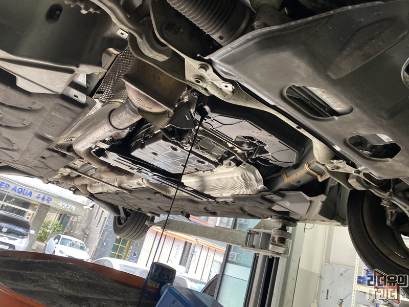 에어 필터와 오일 필터를 분리후 차를 리프트업으로 올립니다.