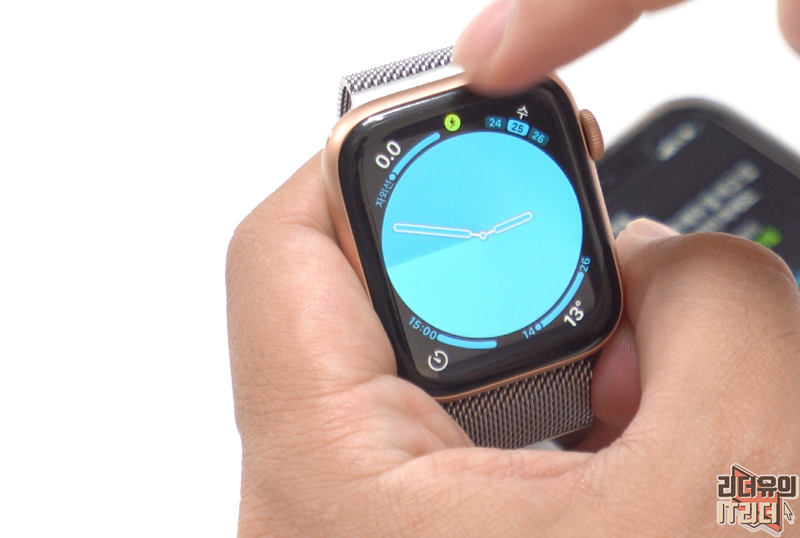 워치OS6 콤팩트 모듈 워치페이스는 소음 측정을 하는 앱을 전면에 보여주고 있습니다. 3개의 컴플리케이션을 선택해서 보여줘 기능성까지 갖추고 있습니다.