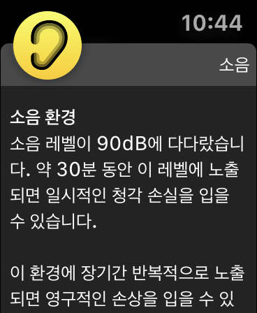 소음레벨이 계속 높으면 알림으로 알려주기도 합니다. 청각 건강은 소중합니다. 사전에 막을 수 있다는 사실 잊지 마세요