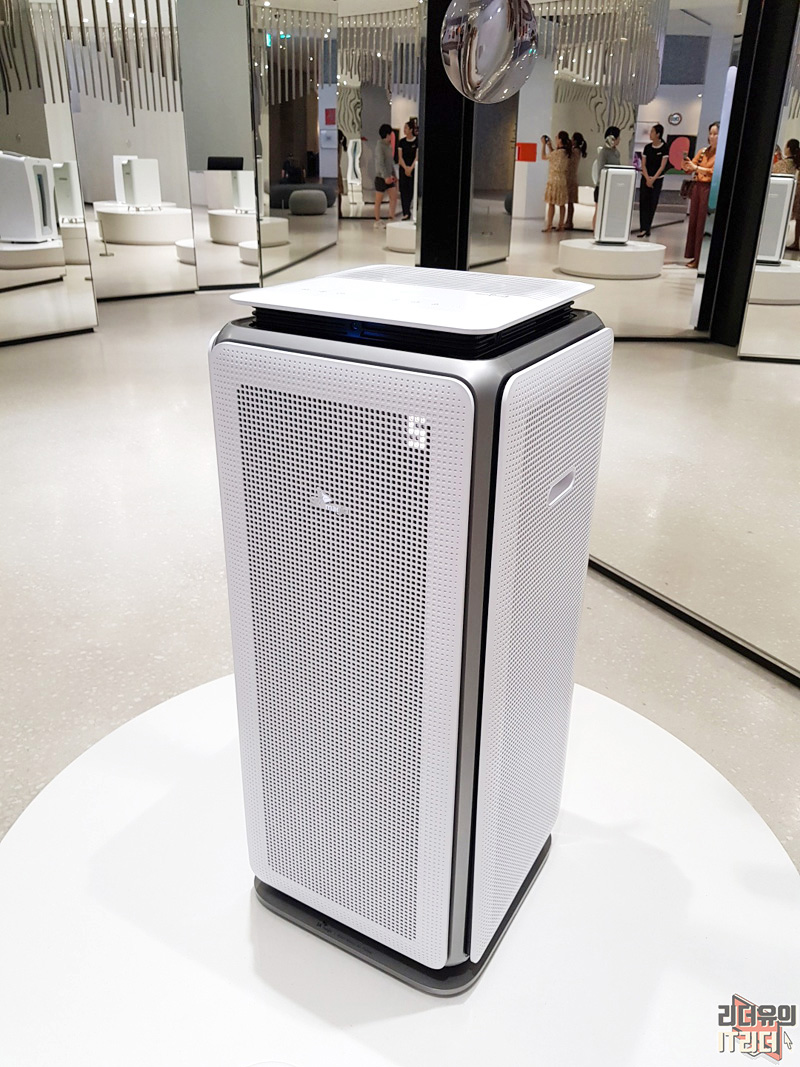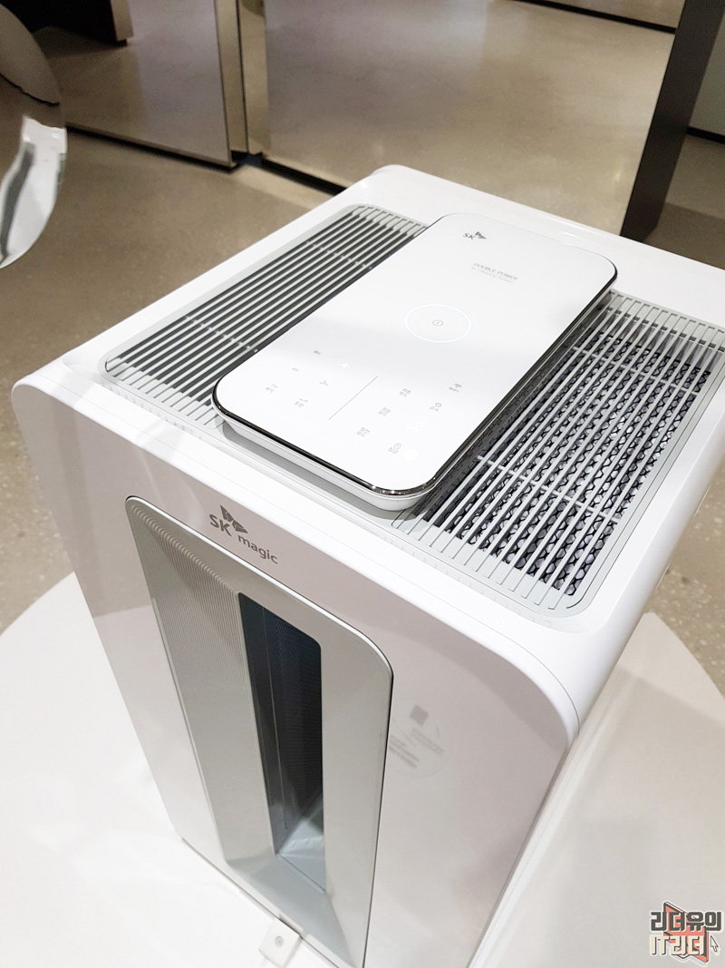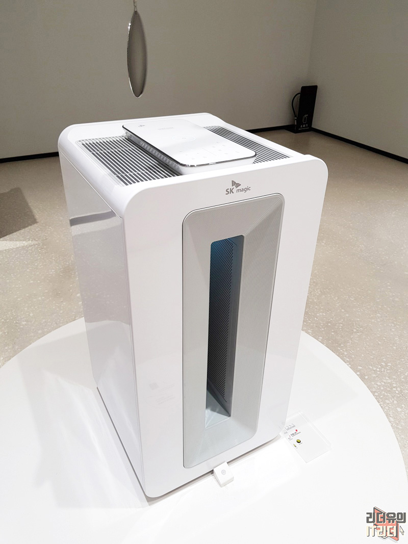 SK매직 AI 공기청정기도 인상적입니다. 32평형을 커버할 수 있는 대용량으로 2개의 모터, 2개의 팬, 8개의 필터로 더 강력한 공기청정을 할 수 있습니다