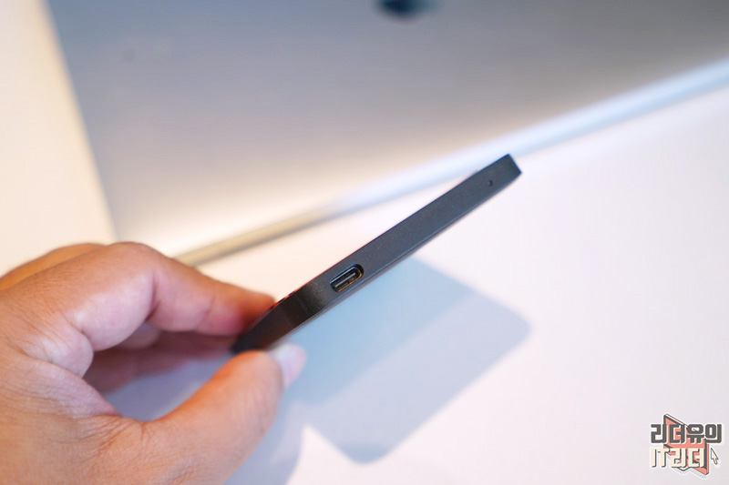 라씨 포터블 SSD는 슬림하고 세련된 디자인으로 프리미엄 이미지를 주고 있습니다. 고급 알루미늄 소재로 되어 있고 빨간색의 포인트라인까지 투박한 외장하드의 이미지가 아닌 프로페셔널한 감각적인 모습을 느낄 수 있습니다. 두께는 9mm 이고 무게는 82g 밖에 되지 않습니다. 카메라, 노트북 등 여러장비를 들고 다니는 사람들에게는 휴대성의 가치도 무시할 수 없는데요. 라씨 외장하드는 휴대할 수 있는 최고의 매력을 제시하고 있습니다.