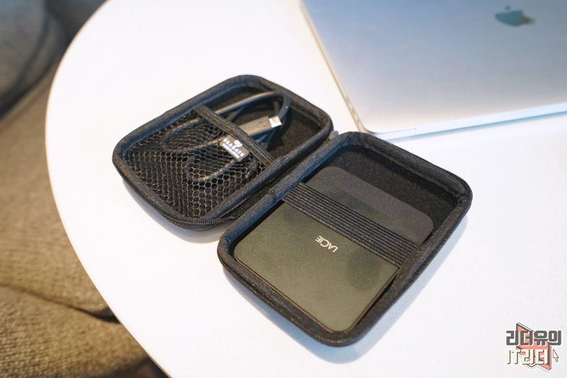 라씨 포터블 SSD 는 이렇게 휴대용 파우치에 휴대해서 다니고 있습니다. 단단한 하드케이스라 라씨 외장하드를 안전하게 잘 보호해 주고 있습니다.