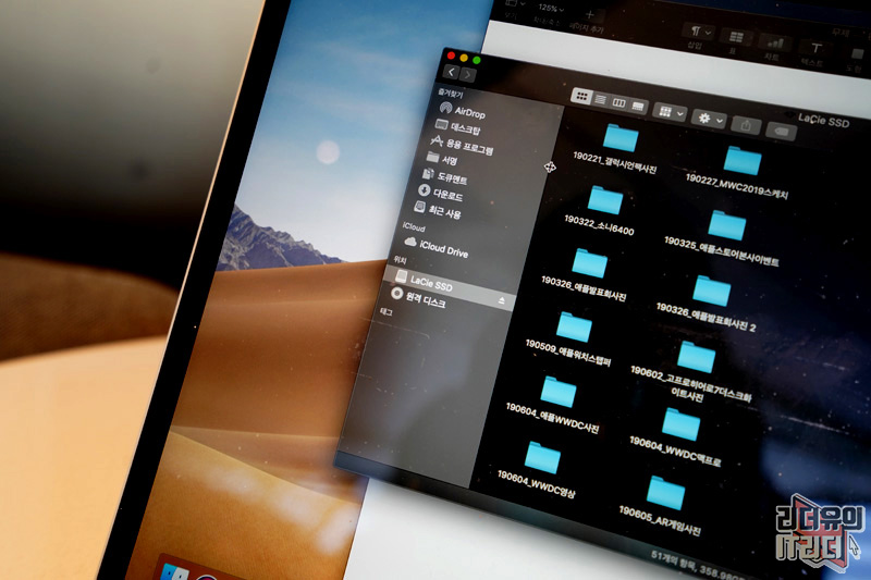 기본적으로 라씨 외장하드에는 작업한 파일을 다 넣고 다닙니다. 맥북프로에서도 사용하지만 다른 기기로도 언제 어디서든 작업을 할 수 있도록 데이터를 넣어서 가지고 다닙니다.