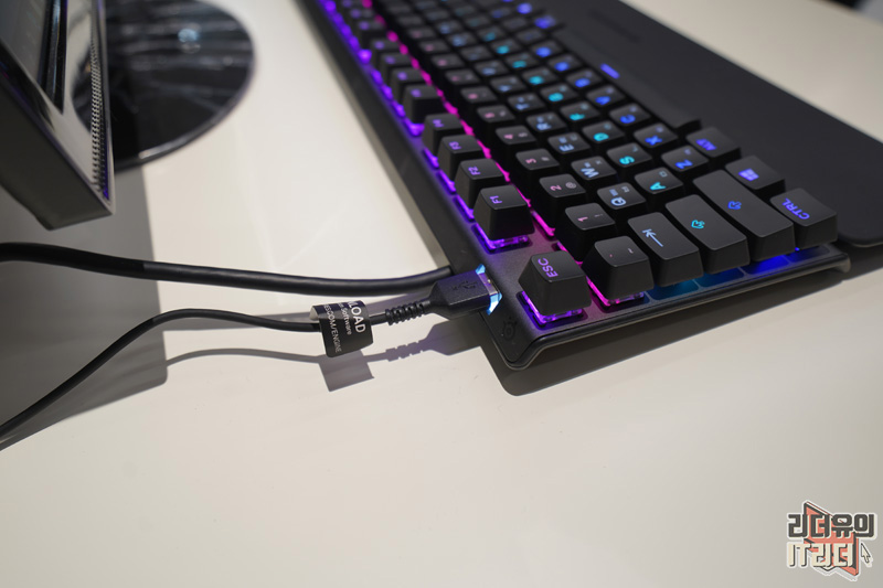 그리고 USB 패스스루 포트가 제공되어 마우스, 헤드셋, 휴대폰 또는 USB 장치들을 키보드에 바로 연결해서 사용할 수 있습니다.