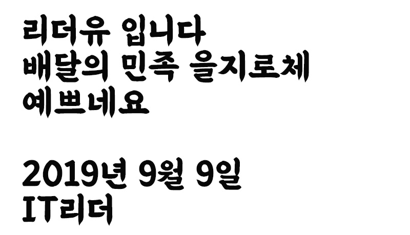 배달의민족이 2019년 한글날을 맞아 새로운 무료 폰트 배달의민족 을지로체를 선보였습니다. 배달의민족은 지금까지 하나체, 주아체, 도현체, 연성체, 기랑해랑체, 한나체Air, 한나체Pro까지 많은 무료 폰트를 선보였는데요. 이번에도 아름다운 폰트를 무료로 배포해 감동을 주고 있습니다.