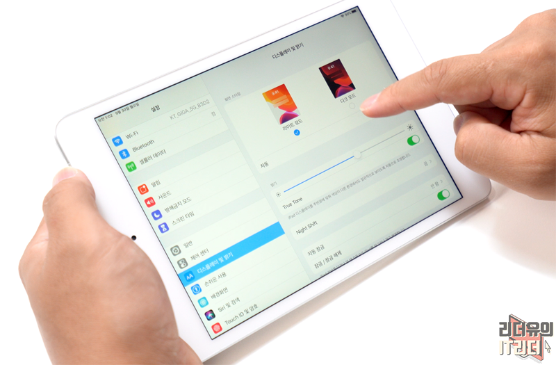 아이패드OS는 iOS13의 변화처럼 다크모드를 사용할 수 있습니다. 라이트 모드, 다크 모드 선택해서 사용이 가능하고 자동으로 시간대에 맞춰 자동 변경이 되도록 할 수 있습니다.