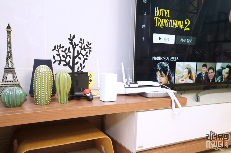 링크시스 벨롭을 설치한 모습입니다. 하나는 거실에 설치했는데요. 메인 공유기로 잡고 사용할 수도 있고 기존 공유기가 있다면 연결을 해서 확장형으로 사용도 가능합니다.