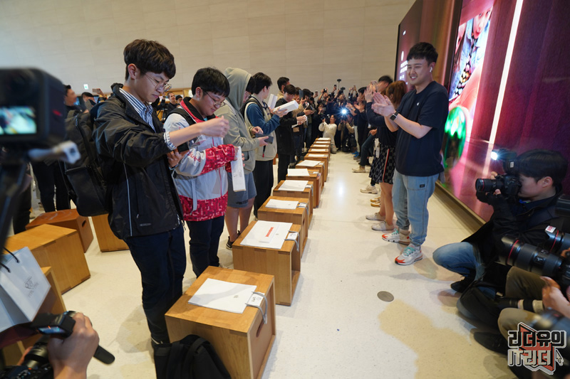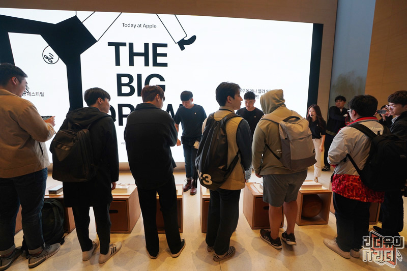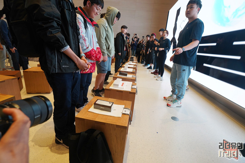 애플스토어 가로수길에서는 10등까지 줄을 선 사람들을 위한 언박싱 행사를 가졌습니다. 구매한 제품을 애플스토어 안에서 개봉하는 특별한 경험을 했는데요. 설레이는 마음을 가득 느껴볼 수 있는 재미있는 시간이었습니다.