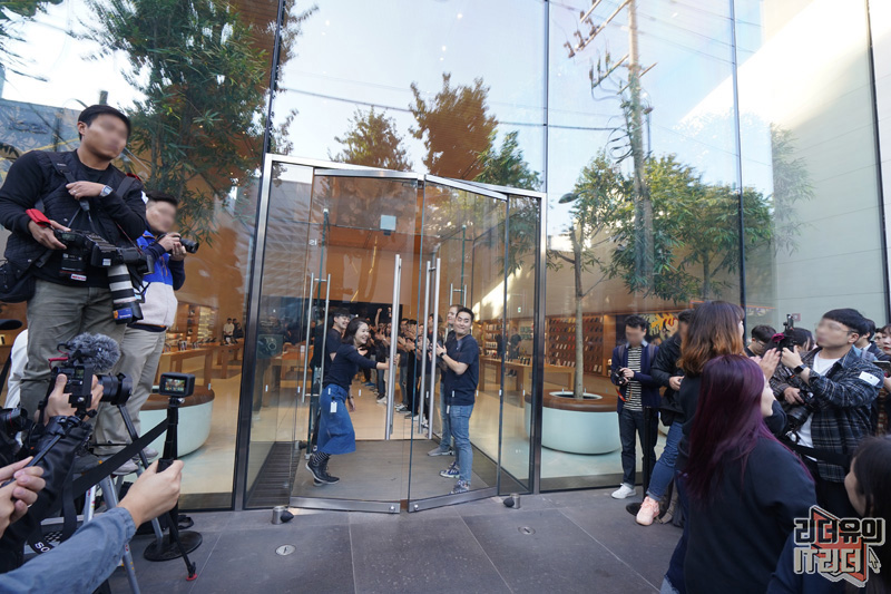 10월 25일 아침 8시 드디어 애플스토어 가로수길의 문이 열렸습니다. 참고로 애플스토어 가로수길은 평상시 10시에 오픈을 하지만 신제품 출시 이벤트에는 8시에 특별 오픈을 합니다. 카운트다운과 함께 한국의 아이폰11 출시일을 기념했습니다.