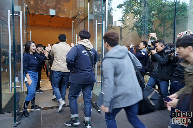 애플스토어 가로수길 지니어스의 환호와 함께 드디어 안으로 들어가고 있습니다. 애플 직원들의 텐션은 언제나 놀랍습니다.