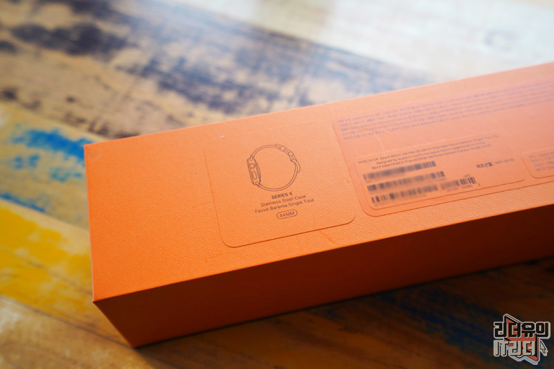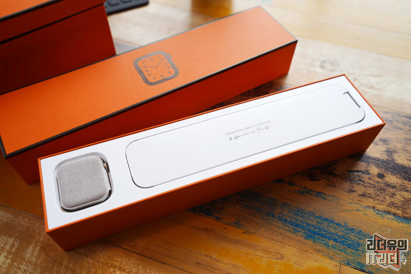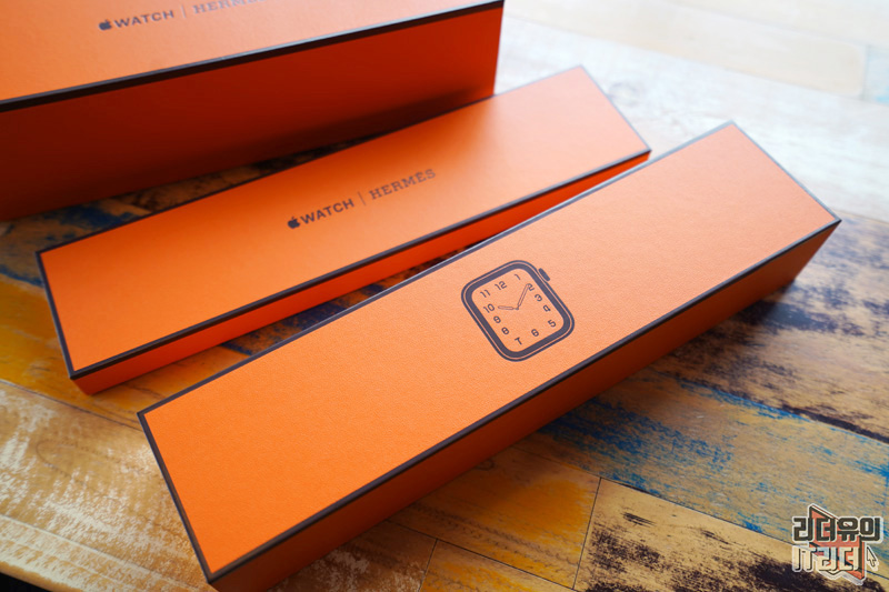 애플워치5 에르메스 에디션 패키지는 에르메스 제품들의 포장을 그대로 적용했습니다. 에르메스에서 제품을 구매하면 에르메스 패키지들이 전부 오렌지색으로 되어 있는데 그 패키지를 그대로 적용했습니다.