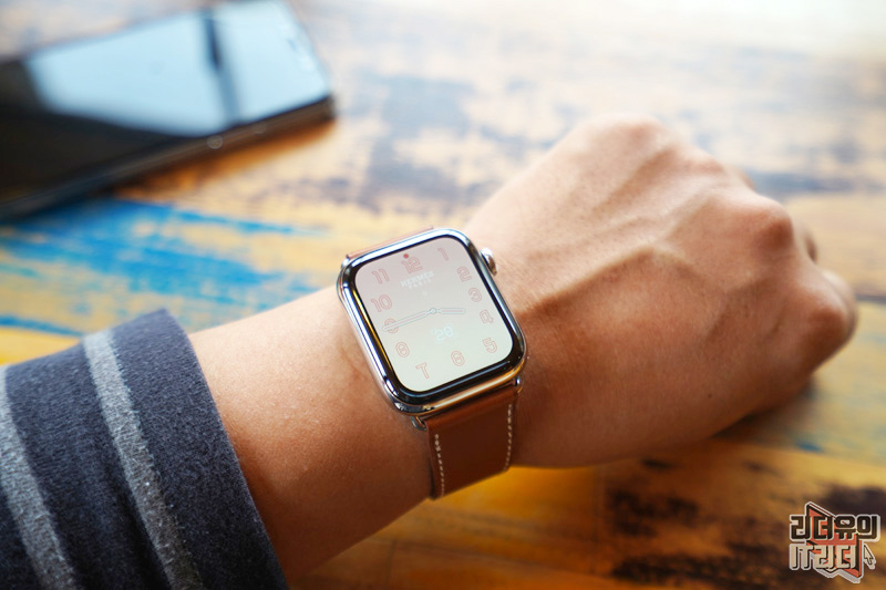 애플워치5 에르메스 에디션이 좋은점은 상시 표시형 레티나 디스플레이가 적용되어 화면이 꺼지지 않는다는 것입니다. 기존 애플워치4까지만 해도 화면이 꺼지면 이게 에르메스 에디션인지 일반 애플워치인지 구분이 안갔지만 이제는 완벽한 에르메스 에디션의 모습을 느낄 수 있습니다.