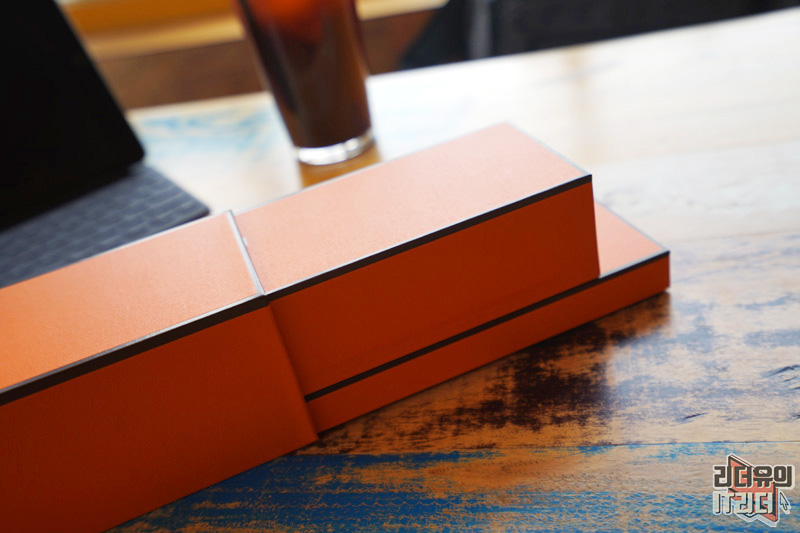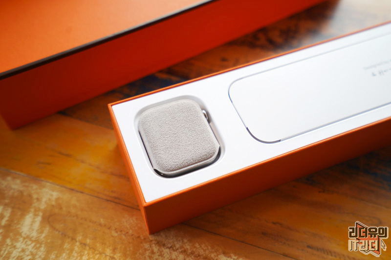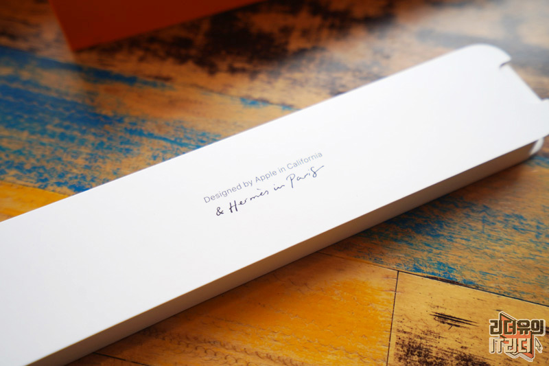 애플워치 에르메스가 고급스럽게 음각으로 새겨져 있습니다. 에르메스는 구찌, 루이비통 보다 한단계 위급의 명품으로 평가 받고 있는데요. 이런 브랜드와 애플워치가 계속 함께 하고 있다는 건 그만큼 애플워치의 브랜드 파워를 인정하고 있다는 의미입니다.