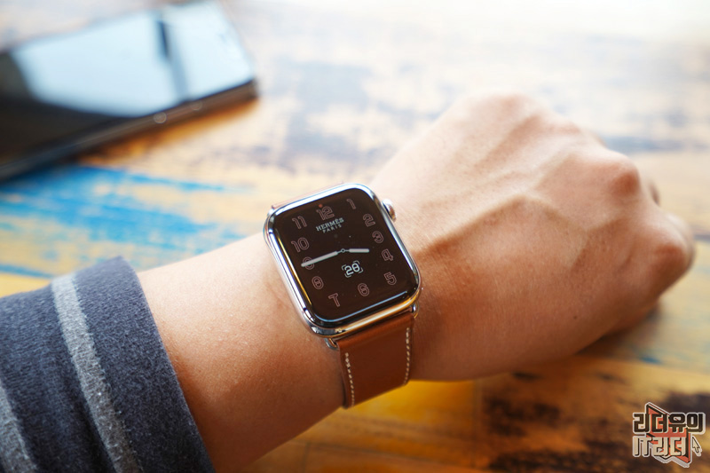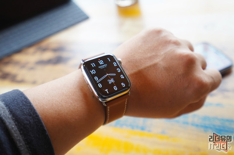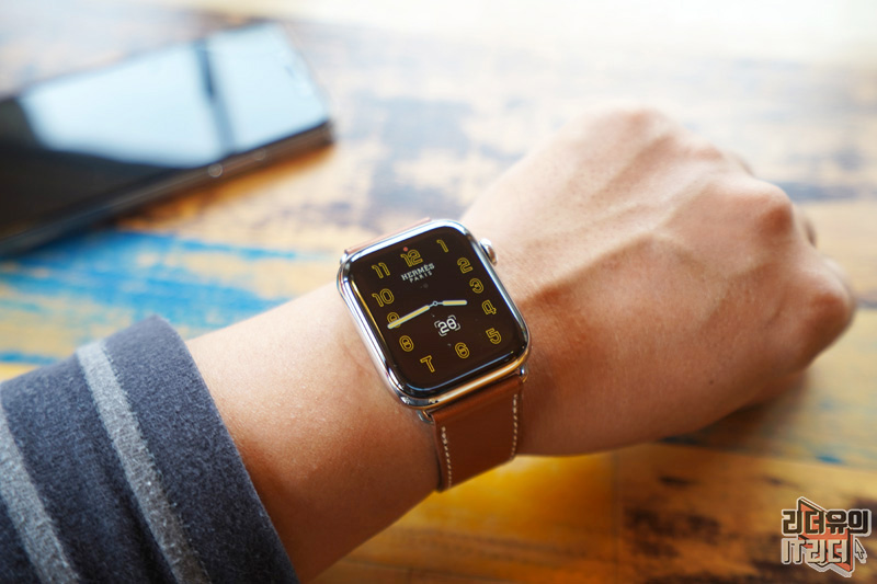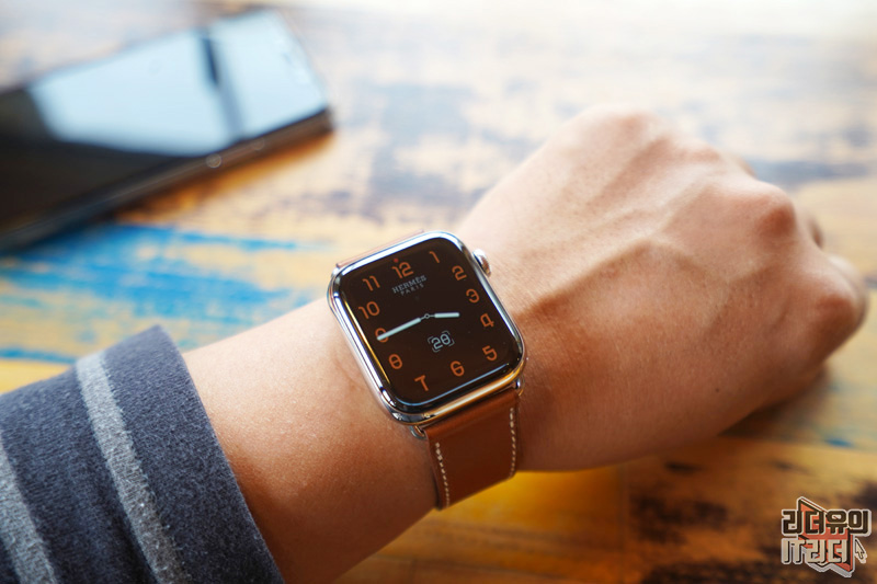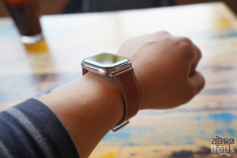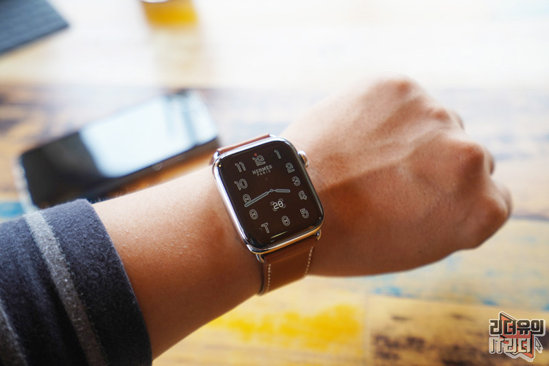 애플워치5 에르메스 에디션을 손목에 착용한 모습입니다.