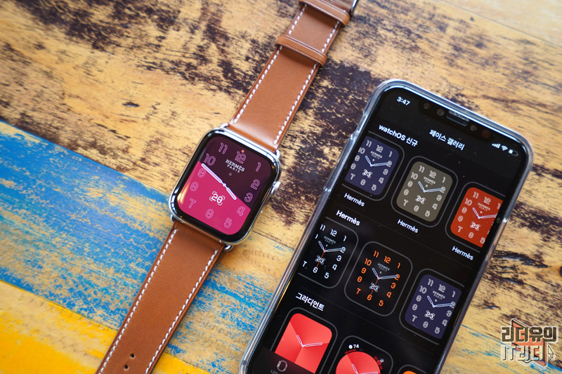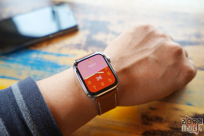 애플워치5 에르메스 에디션에 새로운 워치페이스를 적용한 모습입니다. 에르메스 에디션만의 심플하면서도 감각적인 워치페이스로 다양한 이미지를 느낄 수 있습니다.