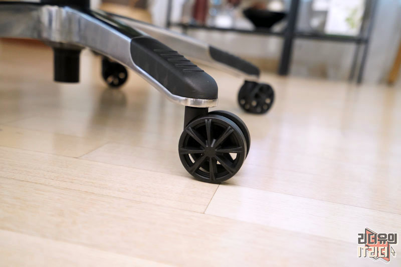 다리는 알루미늄을 강조한 디자인으로 되어 있습니다. 튼튼한 다리이고 모서리 부분에는 부딪혀도 손상이 덜하도록 플라스틱으로 보호를 하고 있습니다.