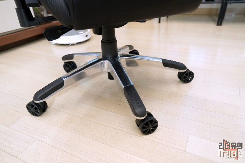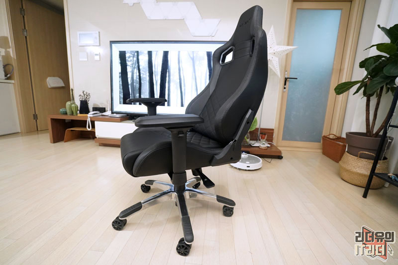허리 받침대 부분과 시트 부분에는 다이아몬드 스티치가 들어가 우글거림 없이 잡아주는 역할을 하고 멋스러운 분위기를 느낄 수 있습니다. 그리고 시트 느낌은 물렁하지 않고 탄탄한 쿠션감을 가지고 있습니다. 저렴한 게이밍의자들은 물렁해서 허리가 틀어지기도 하는데 탄력있는 소재라 장시간 앉아 있기에도 좋습니다. 참고로 아레나 TYPE4는 최대 150kg의 무게를 지탱할 수 있는 튼튼한 내구성을 갖췄습니다.